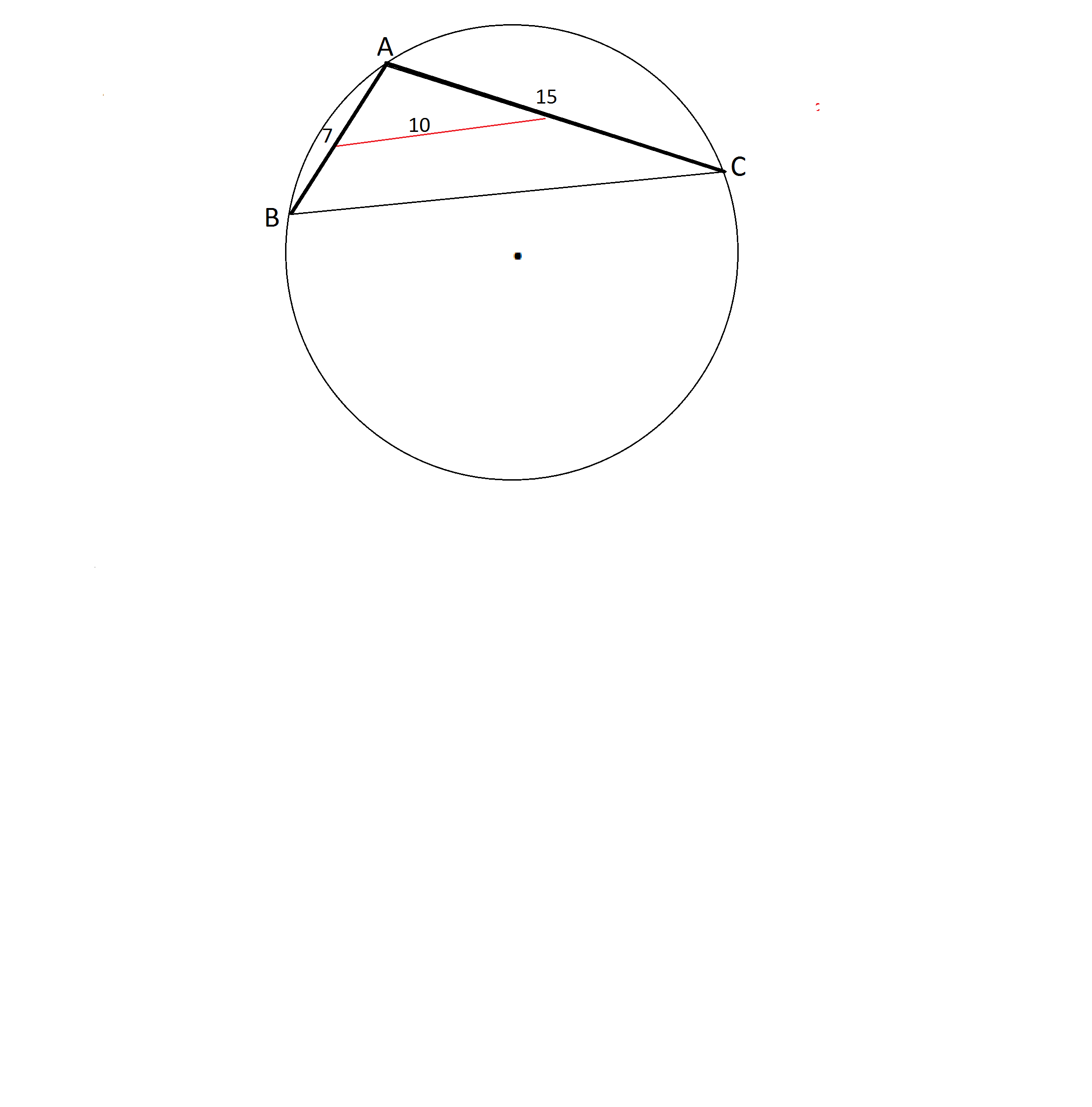 Из точки А, которая лежит на окружности, проведены 2 хорды,длиной 15 и 7.Найти диаметр круга, если расстояние между серединами хорд - 10.