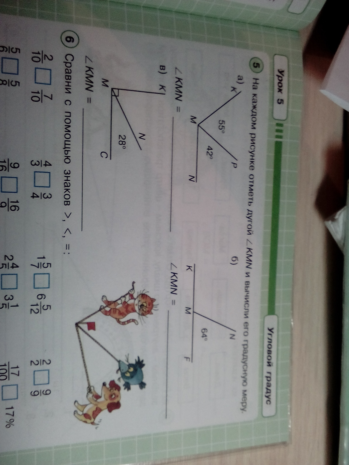 5.а)KMN=55+42=97°