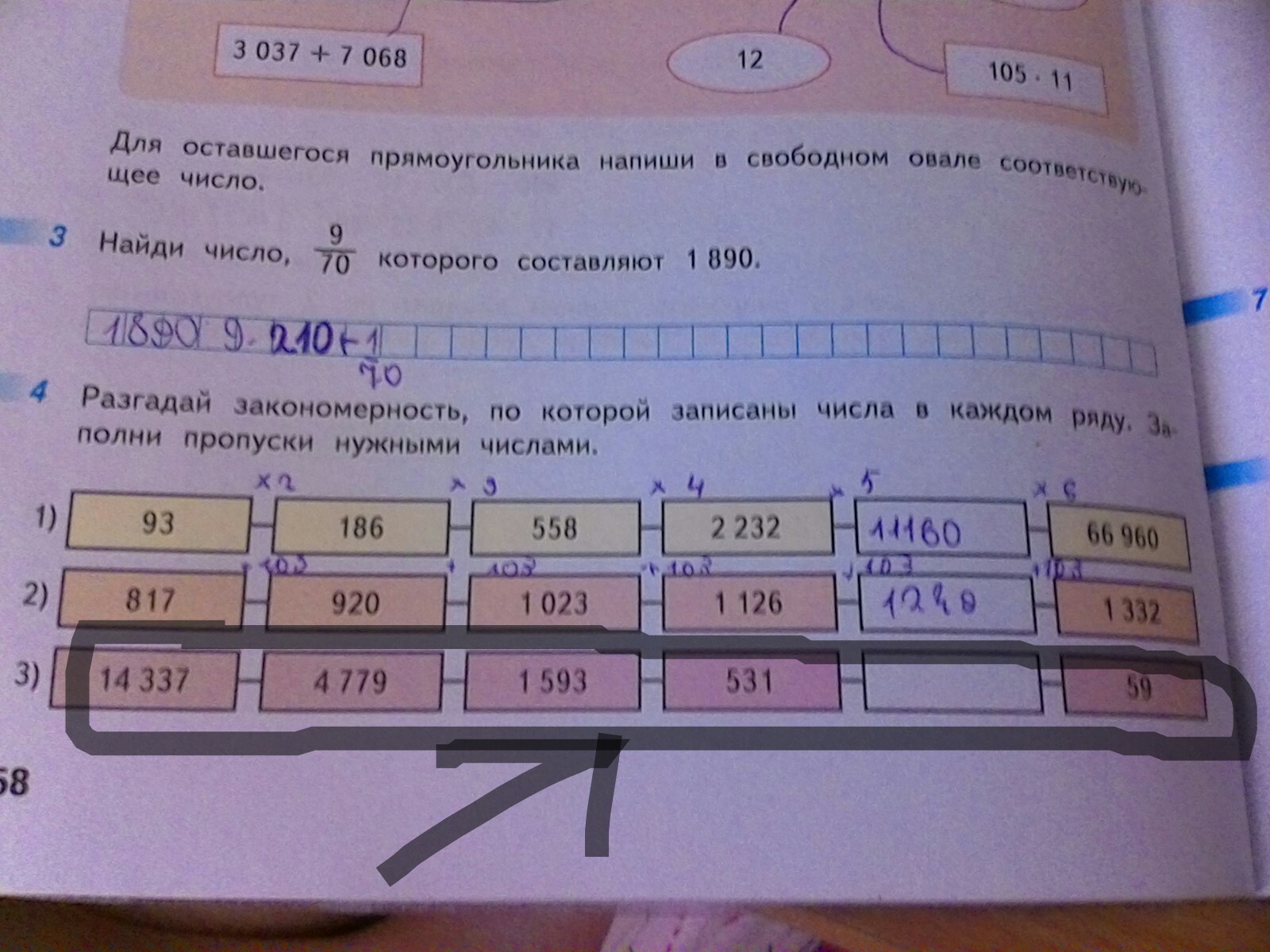 Разгадай закономерность по которой записаны числа в каждом ряду. Заполни пропуски нужными числами.