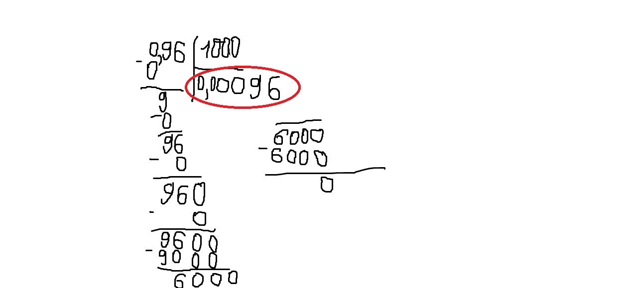 0,96:1000=0,00096 напечатать в столбик не получилось. Старалась нарисовать)))