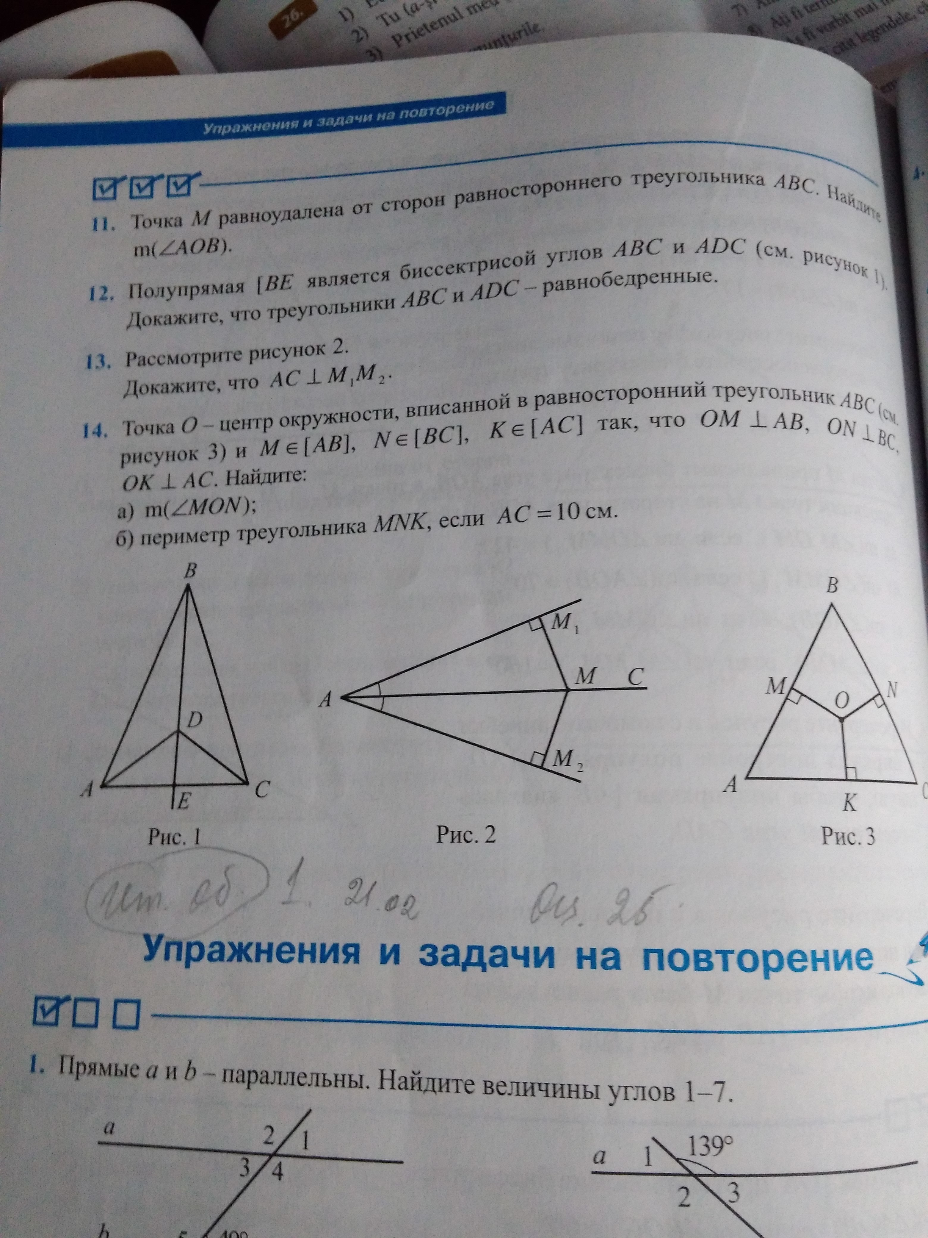 Рассмотрим многоугольник MONB. Сумма углов в многоугольнике равна 360 градусам, а т.к. треугольник ABC равносторонний, то угол А= углу В= углу С и равен 60 градусам. Угол M= углу N (по условию) => угол О=360-M-N-B=360-90-90-60=120 градусов.
