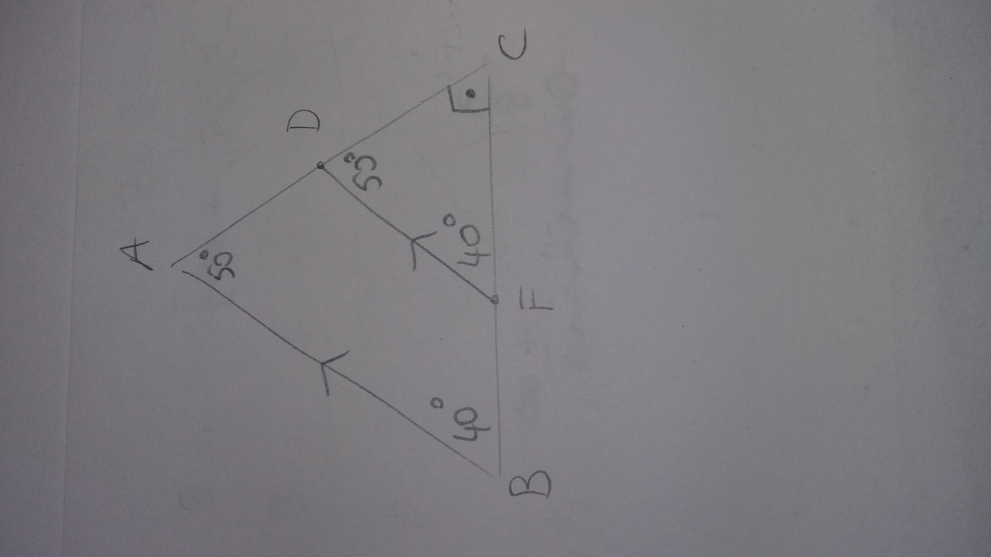 4. Чему равны острые углы прямоугольного треугольника АВС с гипотенузой АВ, если DϵAC, FϵСВ и DF ║ АВ, угол СFD = 40°? A) 20° и 70° B) 40° и 50° C) 30° и 60° D) 10° и 80° 15.