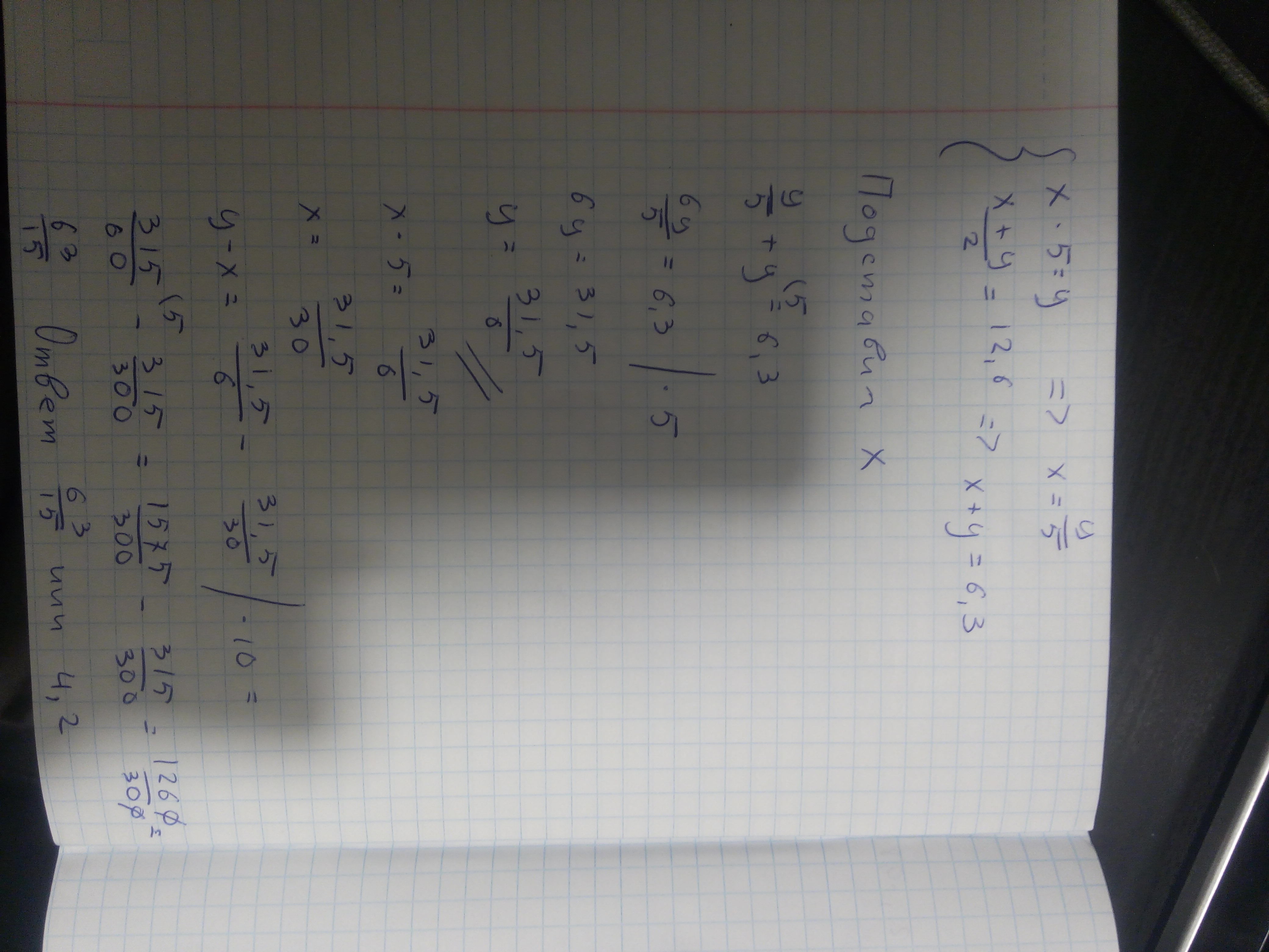 Одно из чисел в 5 раз меньше другого ,а их среднее арифмитическое равно 12,6.На сколько второе число больше первого?