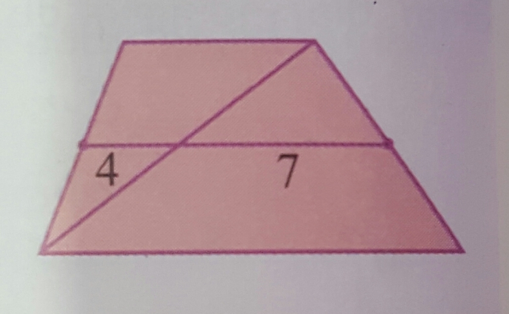 средняя линия равна полусумме оснований ли равна 7. a-b=4, значит а=b+4. подставляем в формулу: (4+2b)/2=7, b=5б а=5+4=9. Ответ: 5, 9