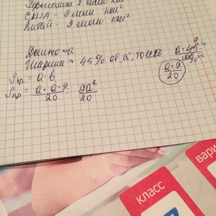 Длина прямоугольника а сантиметров а ширина составляет 45% его длины Какова площадь этого прямоугольника
