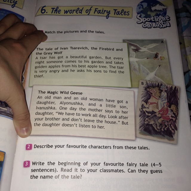 В рассказе об Иване Царевиче, Жар-птице и Сердце Волке У царя есть сад красоты. Но каждую ночь кто-то приходит в сад и берет золотые яблоки со своей лучшей яблони. Царь очень зол, и он просит сыновей найти вора. Волшебные дикие гуси У старика и старухи есть дочь Аленушка и маленький сын, Иванушка, в один прекрасный день мать говорит дочери: «Мы должны работать весь день. Присматривать за братом и не уходить дом." Дочь не слушает ее.