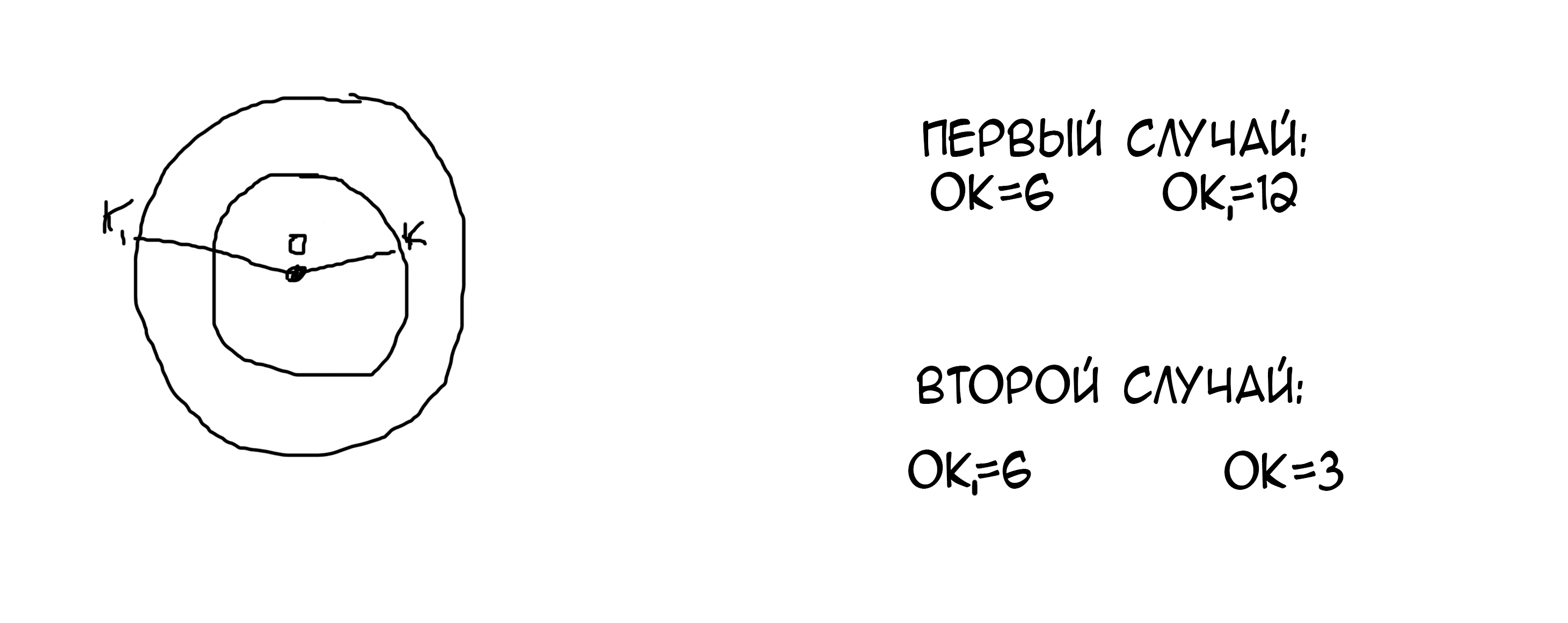тогда радиус второй (большей) окружности =6*2=12 см