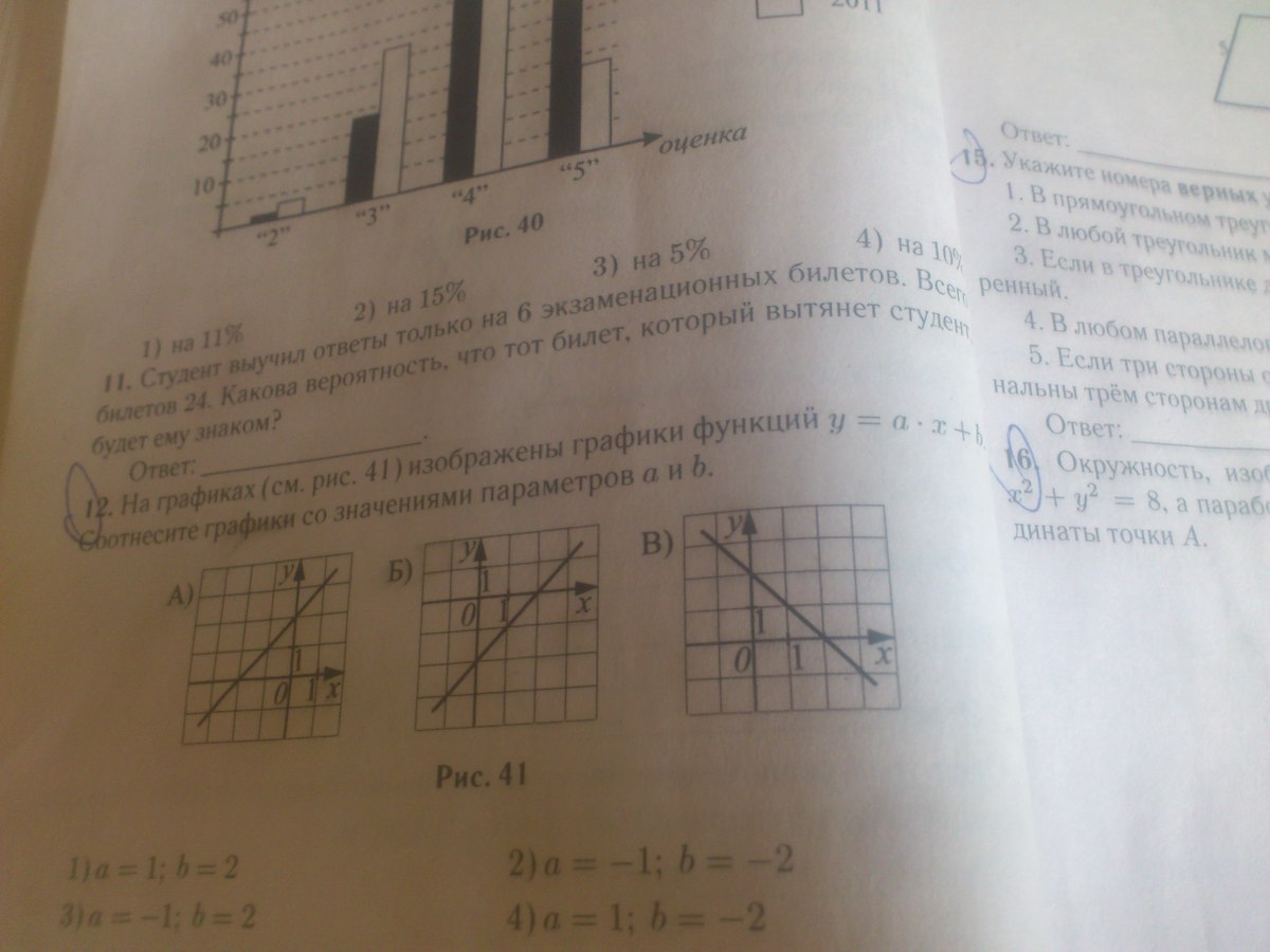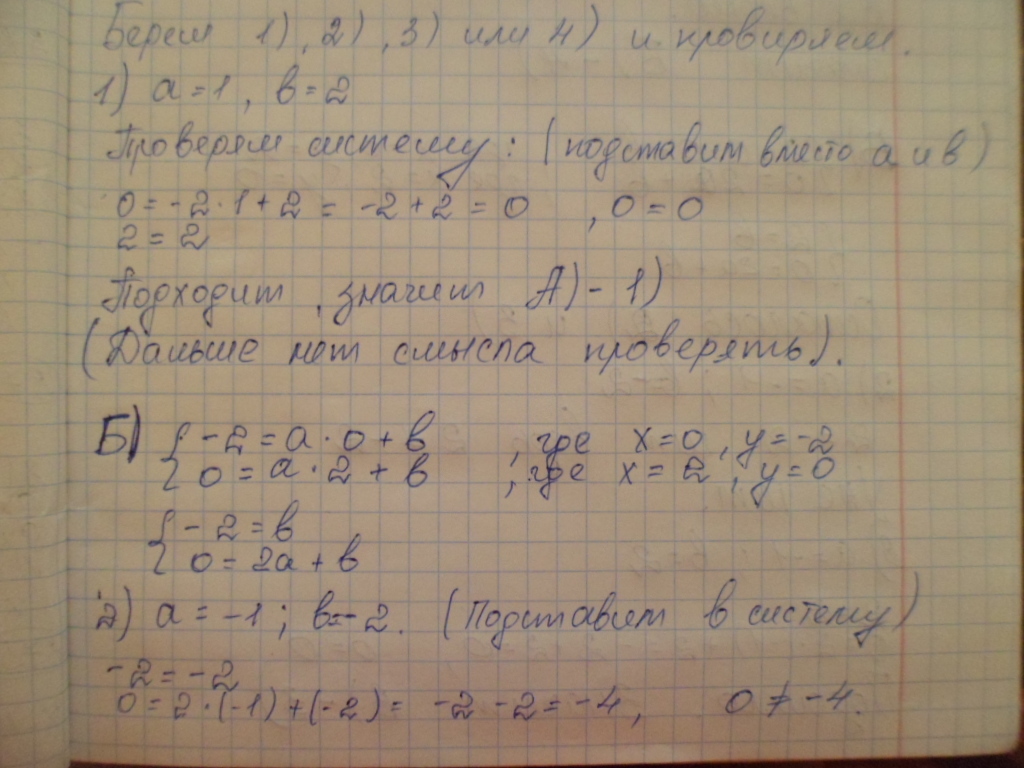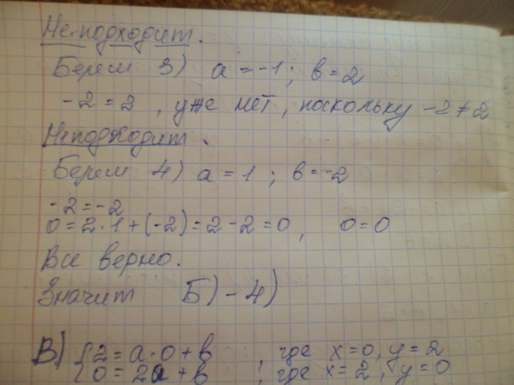 На графиках изображены графики функций y=a*x+b.Соотнесите графики со значениями a и b
