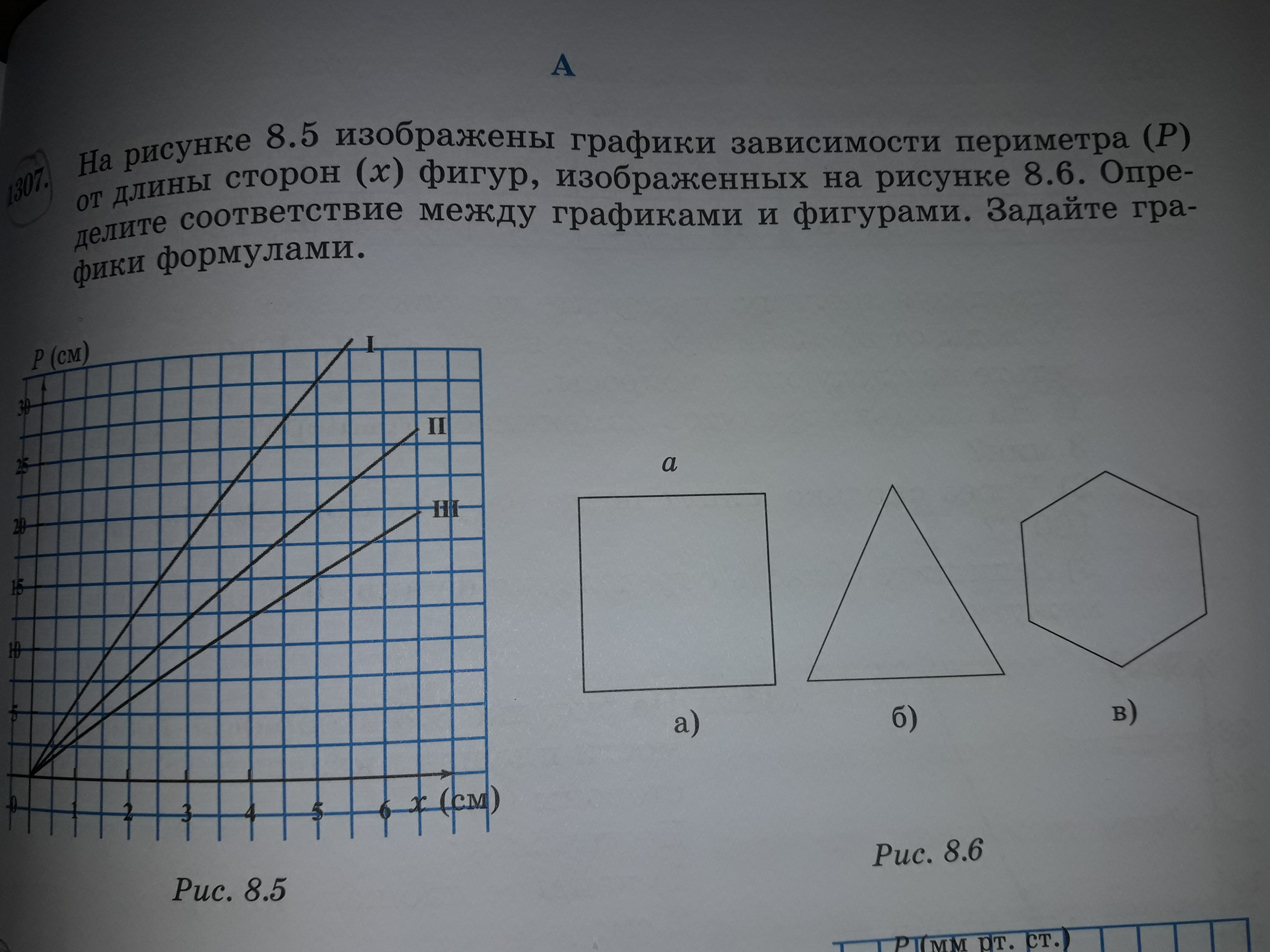 на рисунке 8.5 изображены графики зависимости периметра P От длины сторон из фигур изображенных на рисунке 8.6 Определите соответствие между графиками и фигурами Задайте графики формулами