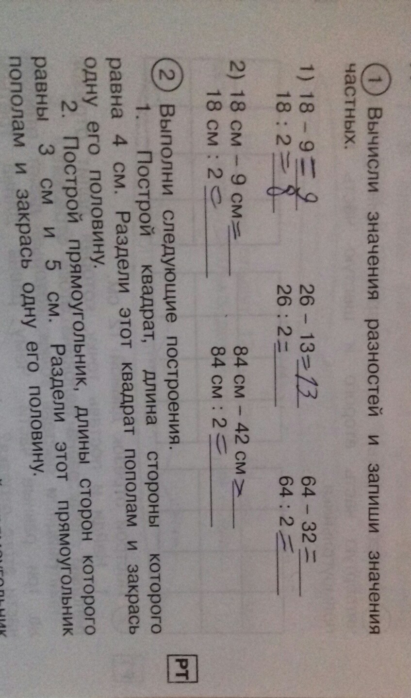 2)18 см-9 см = 9 см 84 см - 42 см = 42 см