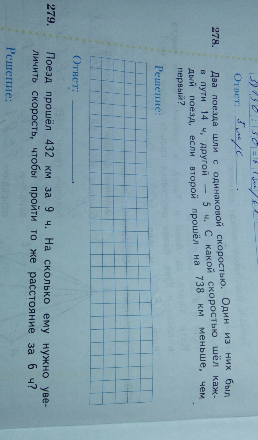 2) 738 : 9 = 82 3)82 * 14 =1148 4) 82*5 = 410 Ответ 1 поезд прошел 410 а 2 1148