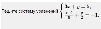 у=5-3х в системе с (х+2)/5 + (5-3х)/2 = -1;