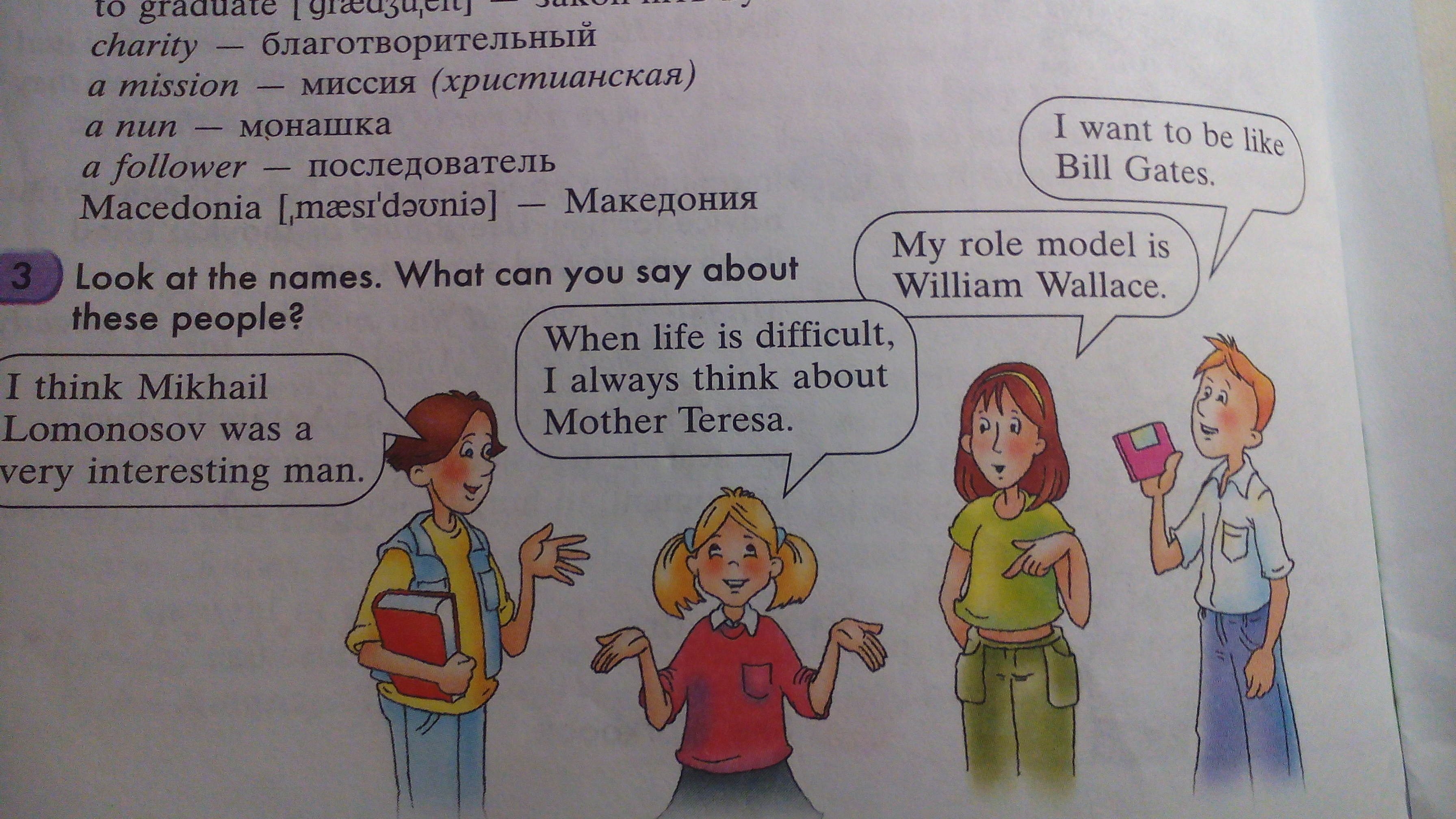 All these names belong, or once belonged, to famous people, who have, to some extent, shaped the world we know today. For example, Mikhail Lomonosov was a famous Russian polymath, scientist, and writer, who made important contributions to literature, education, and science. Mother Theresa was a nun and missionary and is considered one of the greatest humanitarians in the 20th century. Sir William Wallace was a Scottish knight. And, of course, Bill Gates is an American business magnate, investor, author, and philanthropist. All these people set a good example, so that is why the children look up to them as their role models and inspiration.