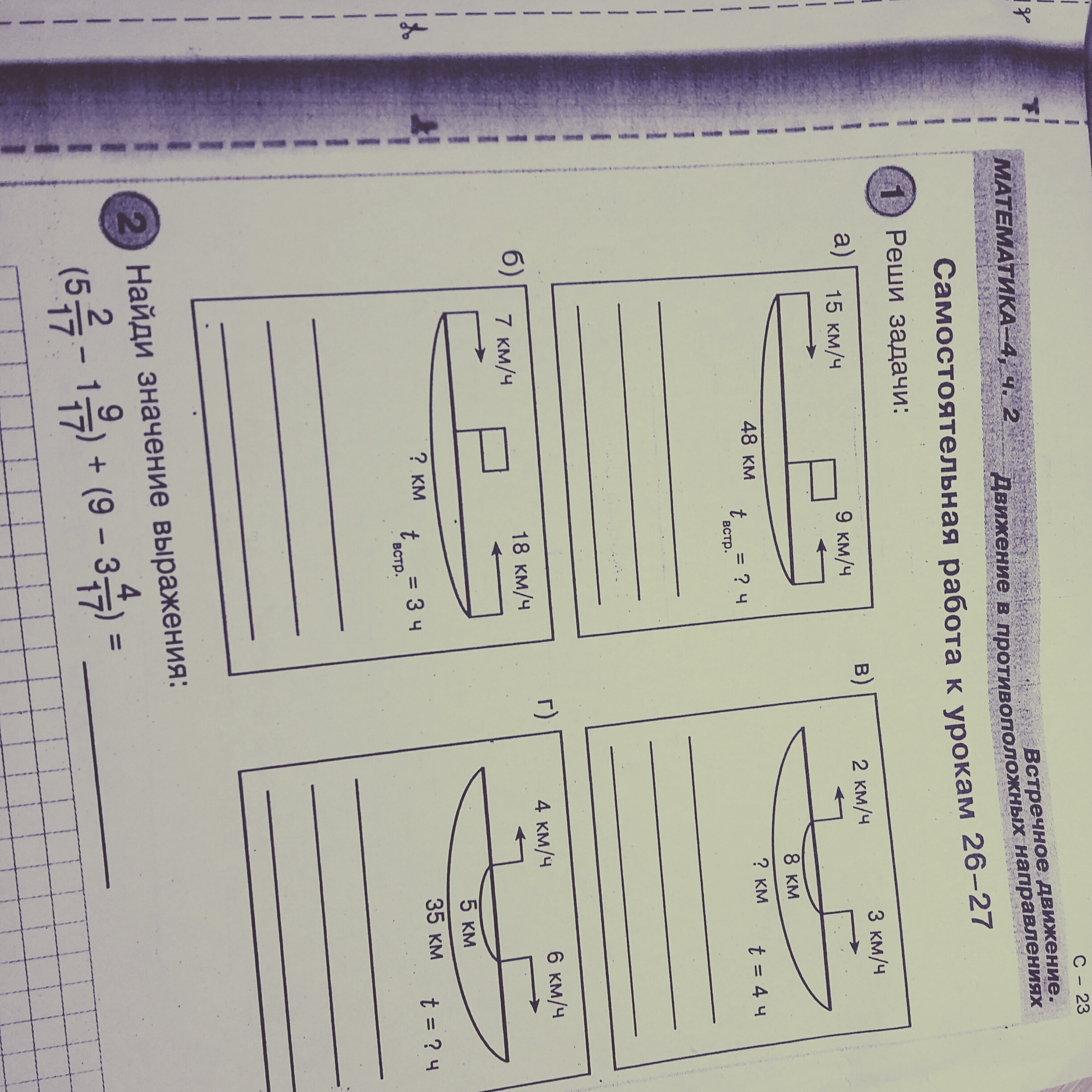2) за 4 часа они пройдут расстояние 5 км/ч • 4 = 20 км