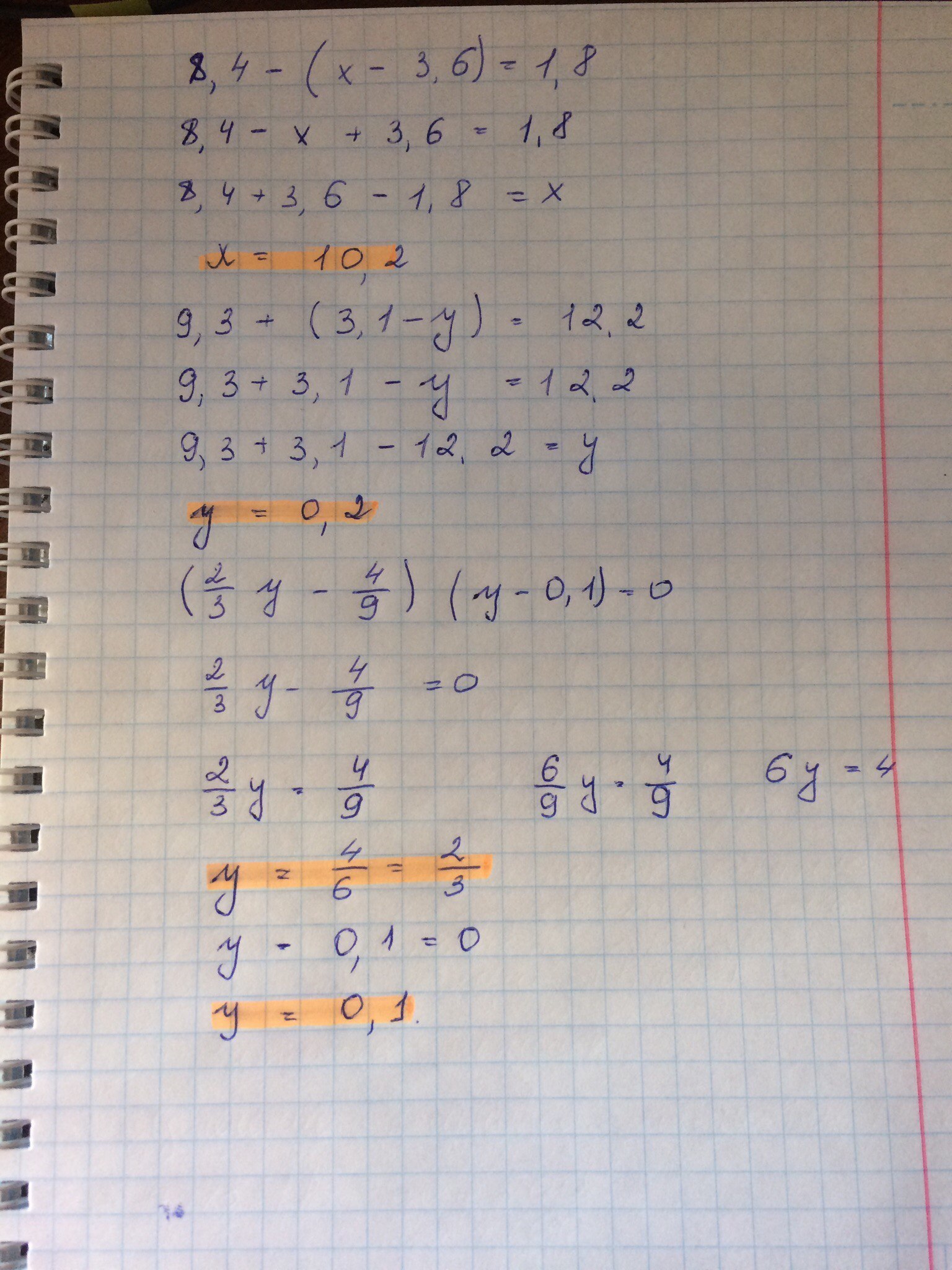 При раскрытии скобок смотришь на знак перед скобкой, если минус, то знаки в скобке меняются на противоположные. Если плюс, то остаются такими же. А в 3 уравнении просто каждую скобку приравниваешь к нулю