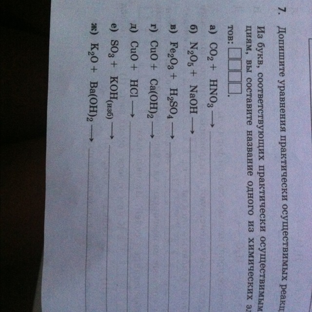 N_2O_5+2NaOH=2NaNO_3+H_2O\Fe_2O_3+3H_2SO_4=Fe_2(SO_4)_3+3H_2O\CuO+2HCl=CuCl_2+H_2O\SO_3+2KOH=K_2SO_4+H_2O