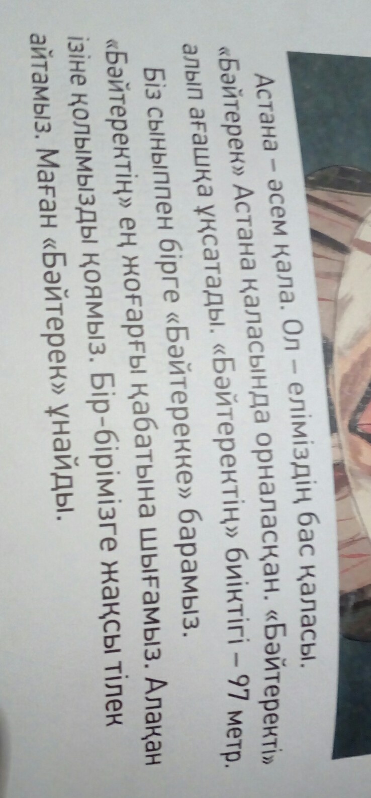 Мы вместе с классом пойдем на Байтерек. Поднимемся на самый высокий этаж в Байтереке. Поставим ладоши на след руки. Расскажем друг-другу хорошие пожелания. Мне Байтерек нравится