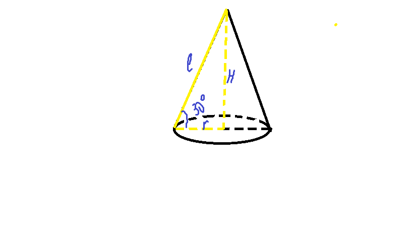 - где H высота, r - радиус основания конуса.