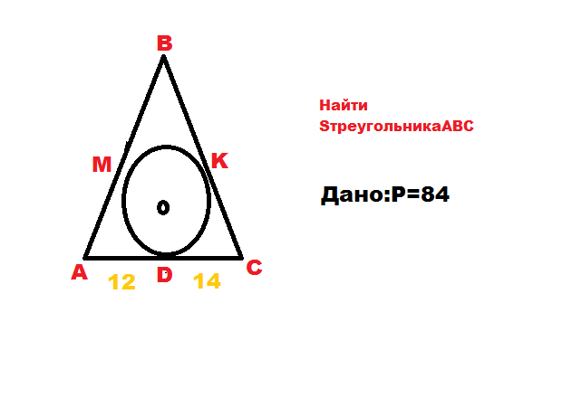 1) АD=AM=12 , CD=CK=14 ,AD+AM+CD+CK=2*12+2*14=52 , p=P/2=84/2=41