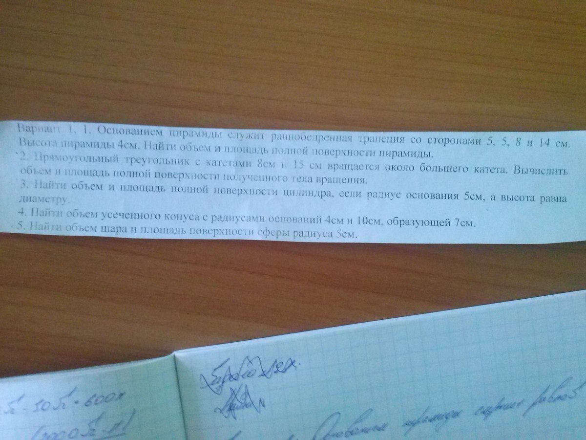 1) Высота основания =4 см (по т Пифагора 5*5-3*3=4*4)