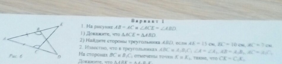 ABD=ACE, по признаку равенства треугольников, 2 угла и сторона