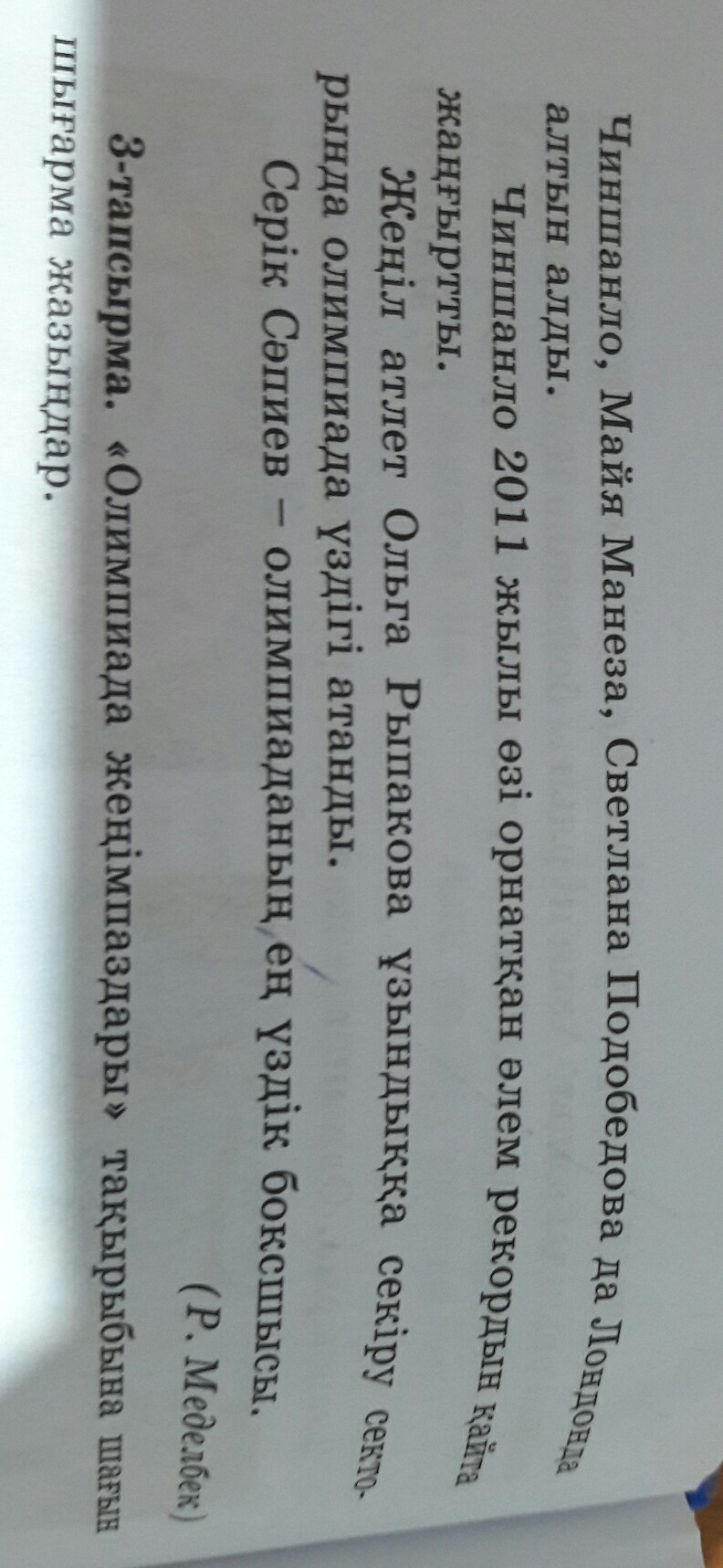 3 тапсырма- ты должен написать сочинение "Олимпийские чемпионы"