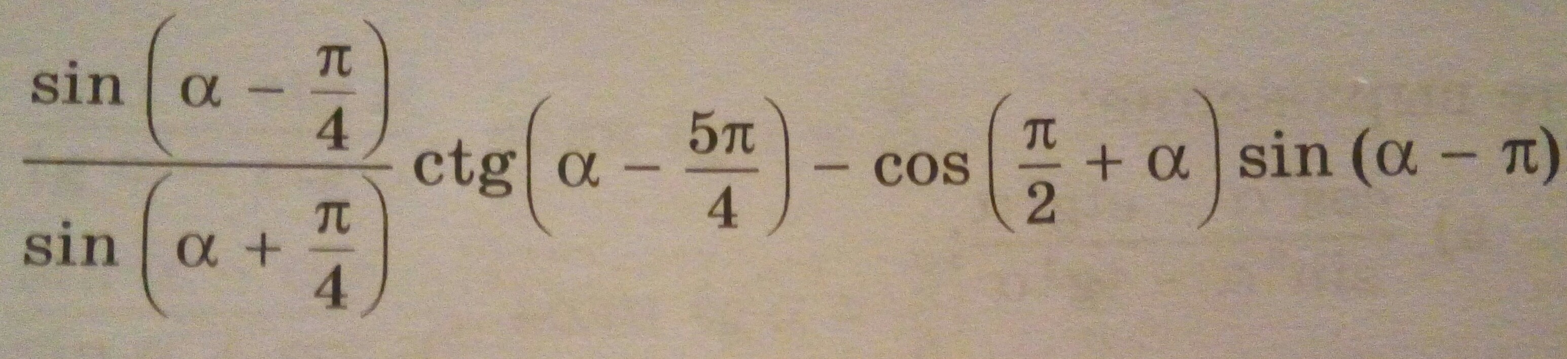 sin(α -π/4) / sin(α +π/4) * ctq(α - 5π/4) - cos(π/2 +α)*sin(α - π) =