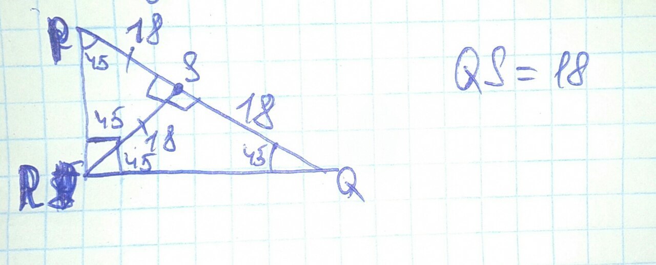 Дано треугольник RPQ, угол RPQ=60 градусов, угол PRQ=90 градусов, угол RSP=90 градусов, PS=18см. Найти QS.