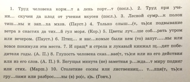 труд человека кормит, а лень портит. труд при учении скучен, да плод от учения вкусен. Лесной сумрак полон тишины и запаха мхов. только слышится подвывание ветра в снастях, да тихий гул моря. Цветы лучше собирать утром или вечером. Птицы и насекомые были кем-то запуганны или вовсе покинули эти места. И пращ, и стрела, и лукавый кинжал щадят победителя годы. Глупость человека сказывается или из его действия, или из его слов. Бегущая минута незаметная, рождает миру подвиг или стих. Столетние сосны или лиственницы толпятся группами или разбросаны в розь.