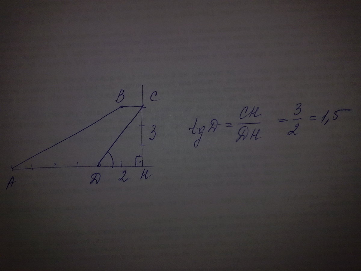 Найдите тангенс угла D трапеции ABCD. Размер каждой клетки на чертеже равен 1 см на 1 см