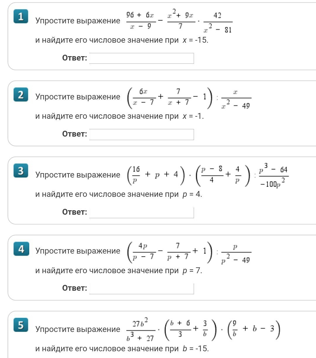 Решение первого! Первые два скрина-упрощение. Следующие два-подставление x=-15.