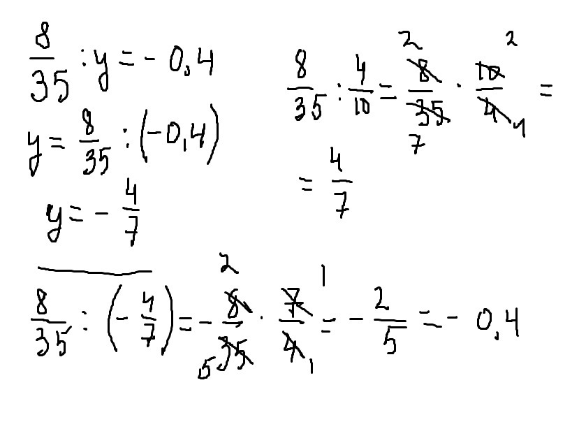б)8/35:(-4/7)= -8/35*7/4= -2/5= -0,4