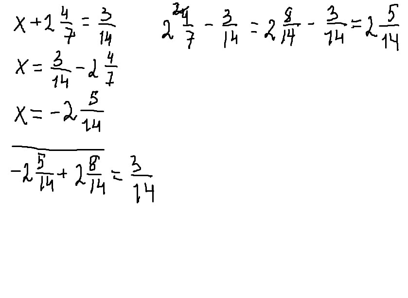 а)-2 5/14+2 4/7= -33/14+36/14=3/14