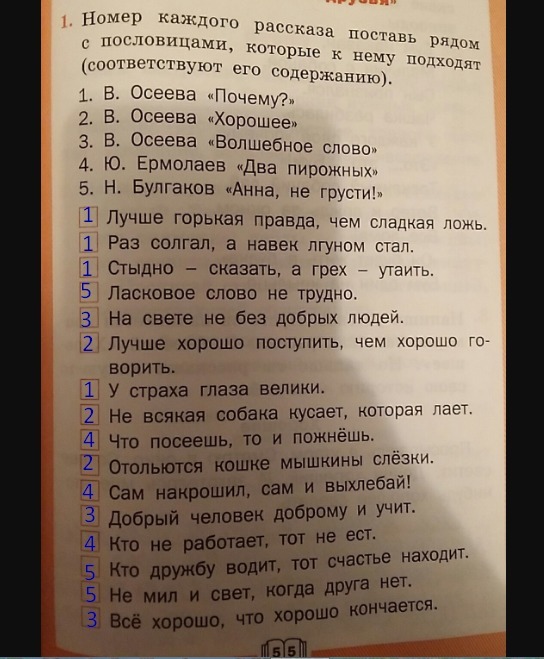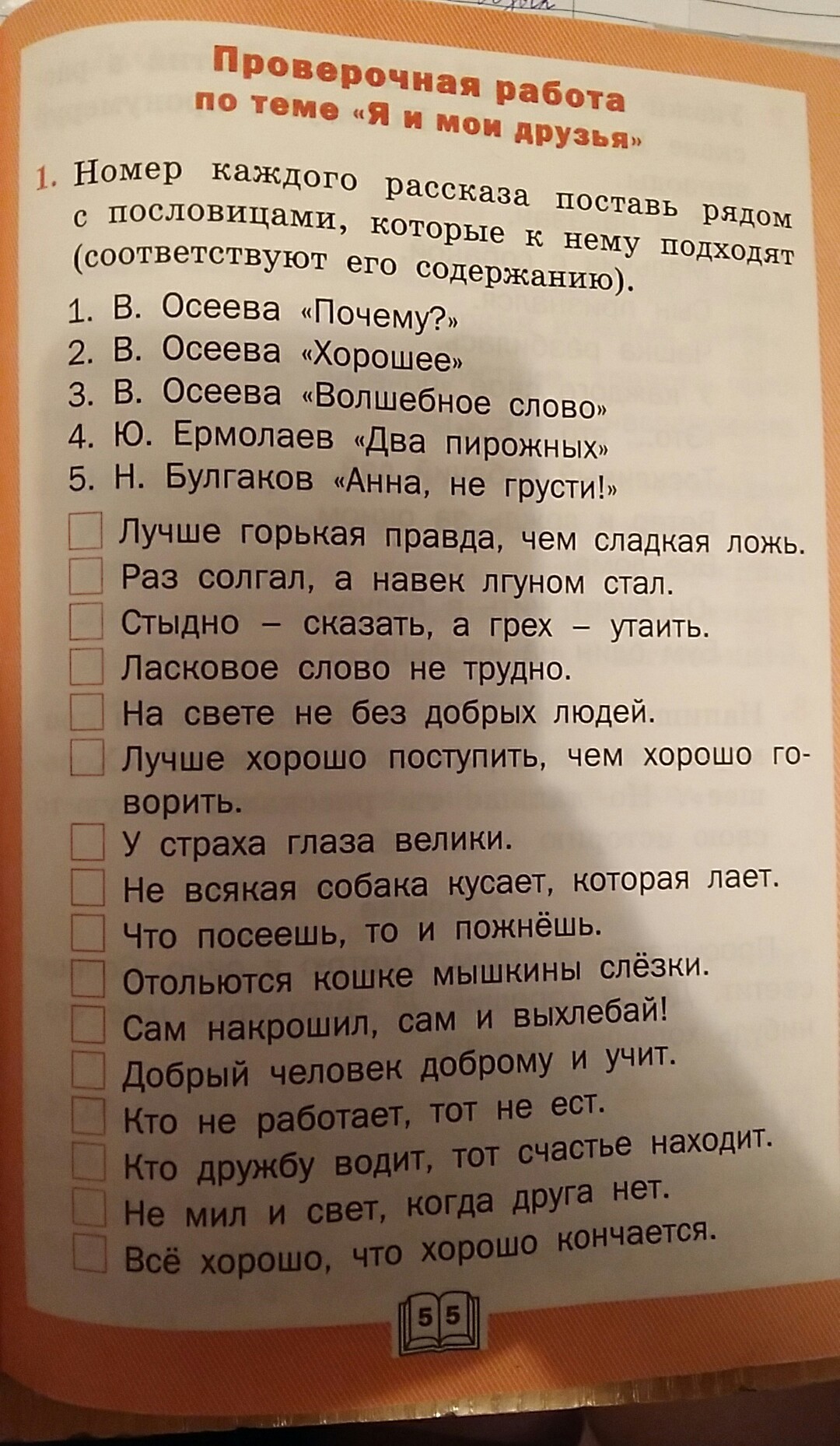 Проверочная работа "Я и мои друзья".Каждому произведению соответствуют пословицы.