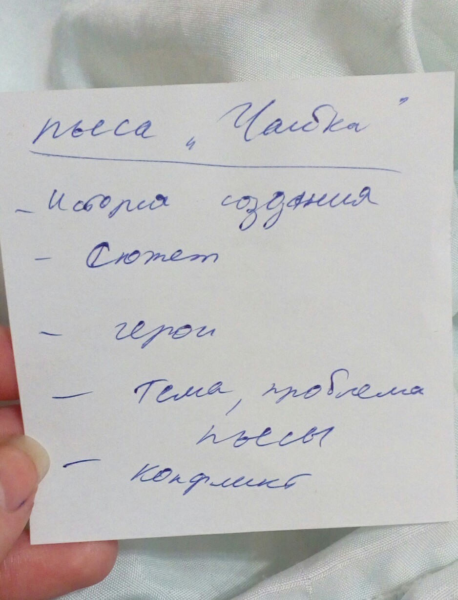 — проблема предательства (Нина Заречная совсем не в восторге от пьесы Треплева, а когда та провалилась, сказала: «Не правда ли, странная пьеса!». Из ее уст это прозвучало как предательство).