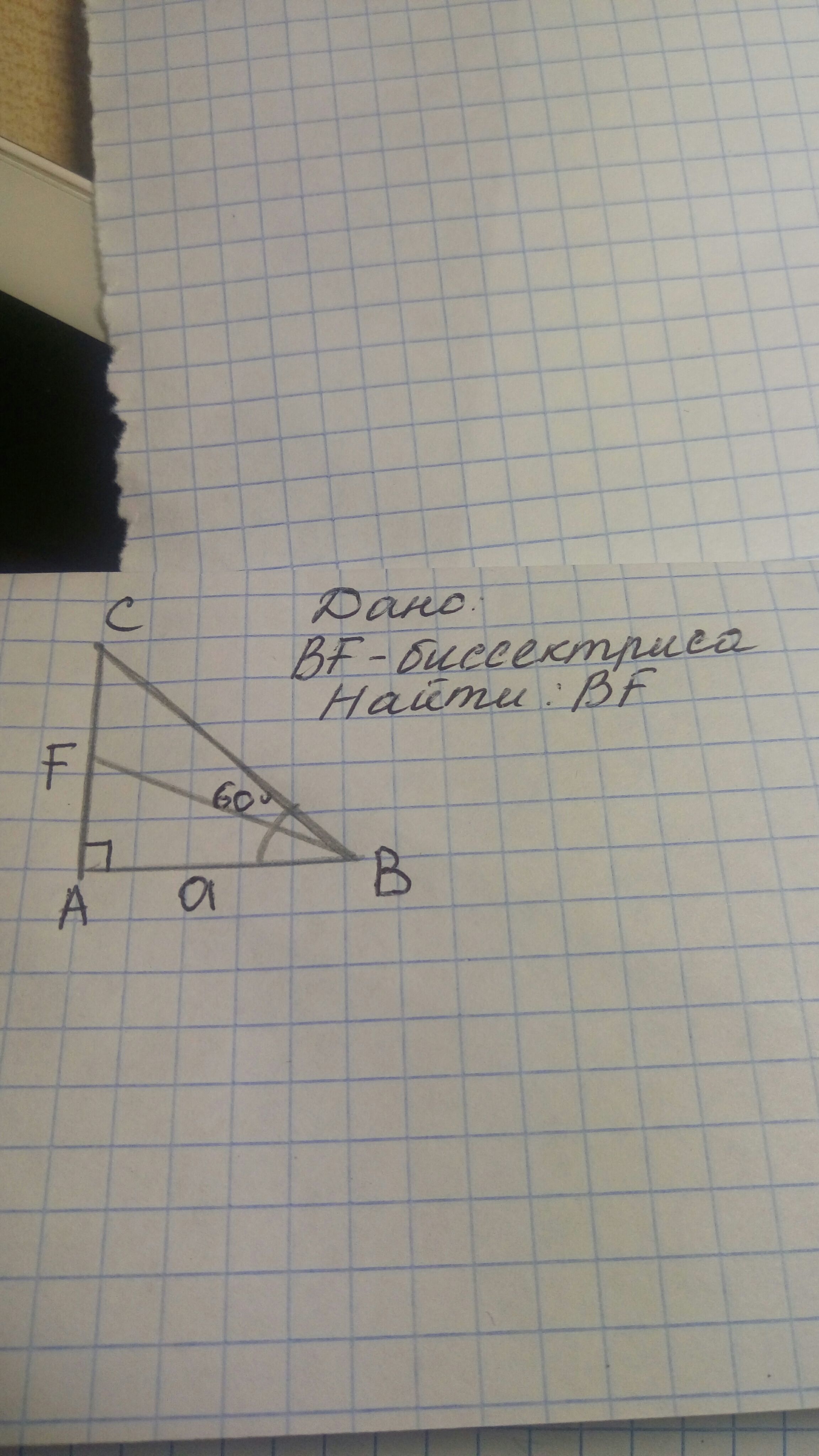 Т.к. ВF-бис-са, то ∠CBF=∠ FBA=60°⇒∠AFB=30°⇒( катет, лежащий напротив Угла в 30°равен половине гипотинузы) BF= 2а