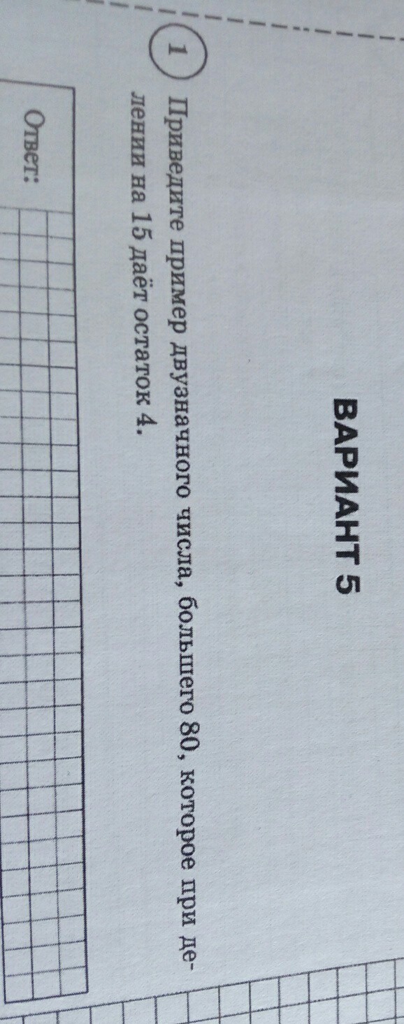 Приведите пример двузначного числа большего 80 которое при делении на 15 дает остаток 4