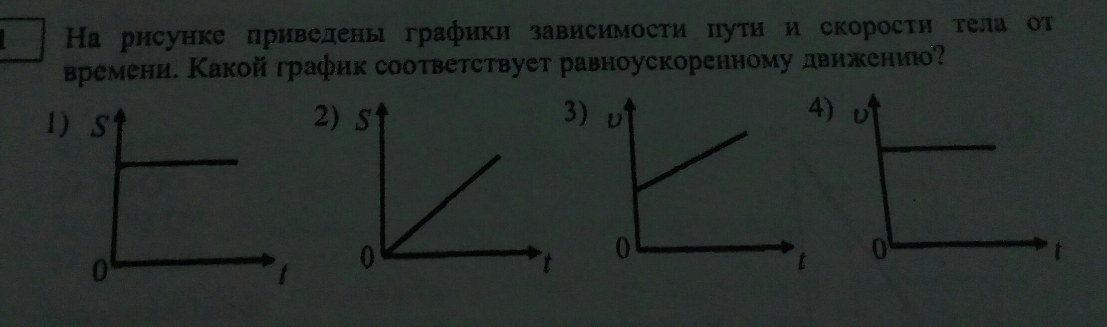 На первом графике тело походу вообще покоится, на втором и четвертом представлено равномерное движение, равноускоренное движение на 3 графике