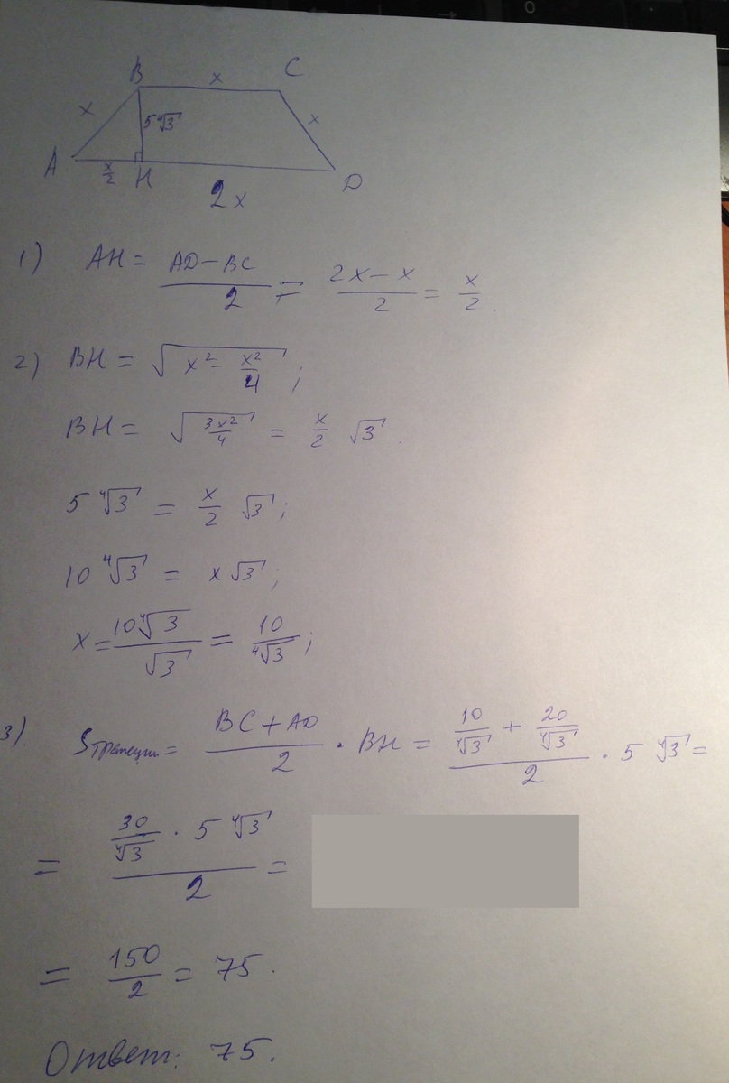 Sтрапеции = (2х+х)*h / 2 = 3x*h/2