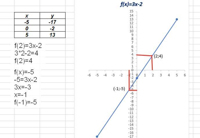 Постройте график функции y=3x-2.Пользуясь графиком найдите: 1) значение функции если значение аргумента равно 2.