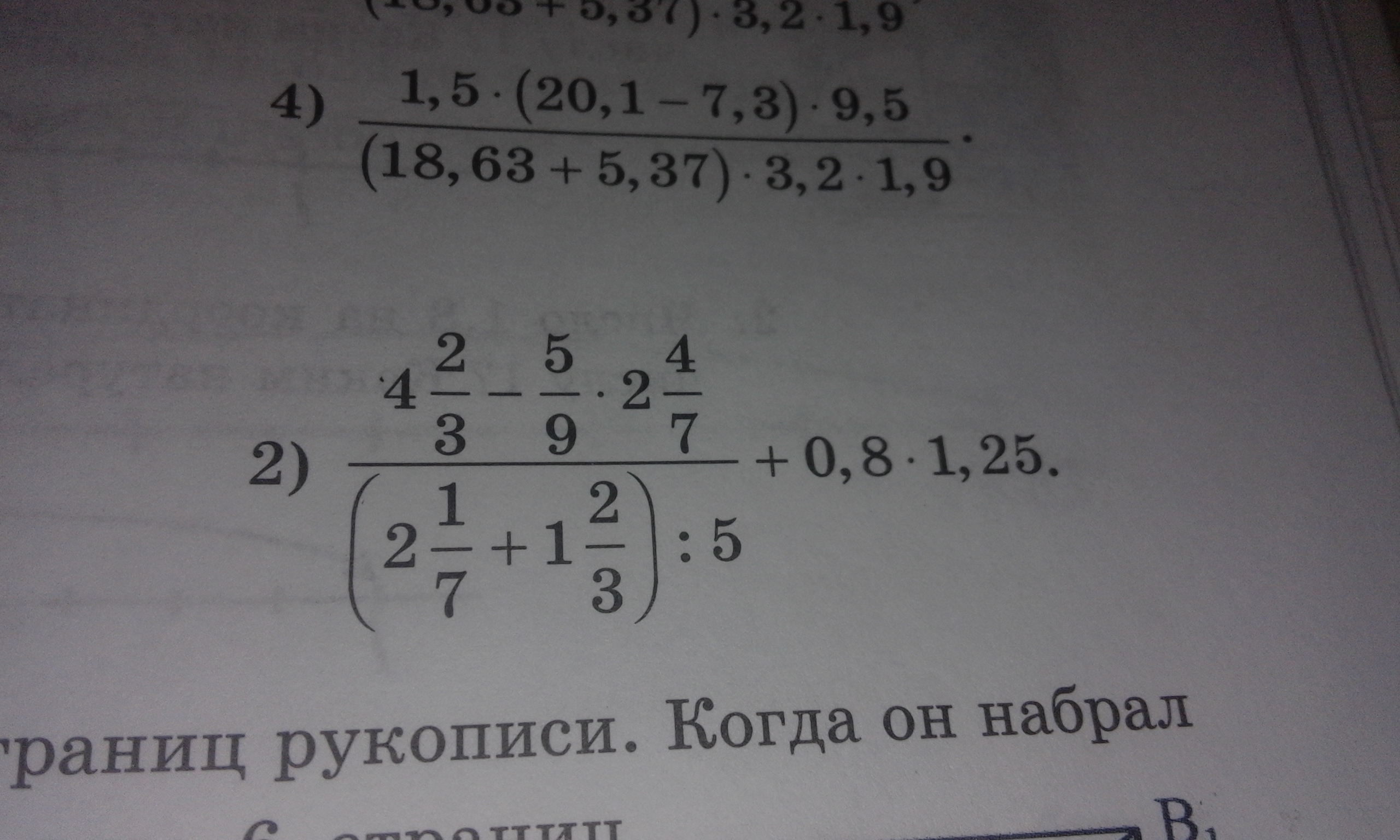 2. 4 2/3 - 5/9×2 4/7 +0,8×1,25=5