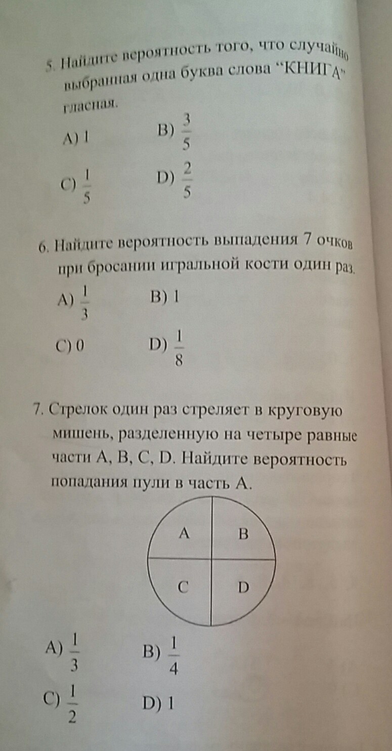6) Ответ C, т.е. в игральной кости только 6 вариантов.
