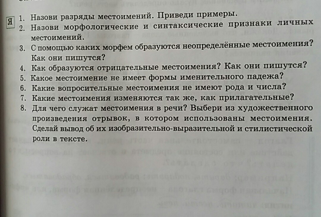Назови разряды местоимений.Приведи примеры.ПОМОГИТЕ ОТВЕТИТЬ НА ВОПРОСЫ МНЕ ОЧЕНЬ СРОЧНО!!!