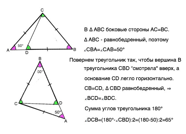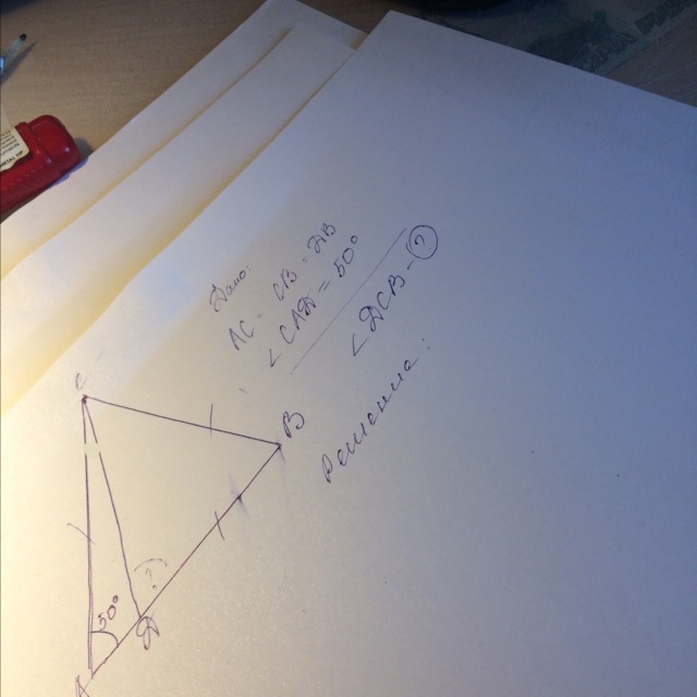 Нужный угол находится через два равнобедренных треугольника. Решение дано в приложении.