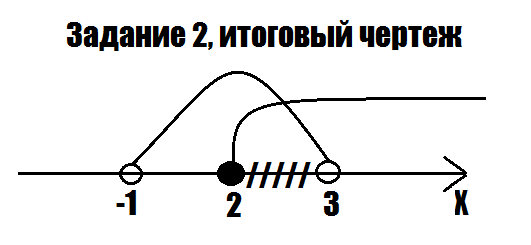 С помощью итогового чертежа ("Задание 2, итоговый чертеж") получаем ответ к системе неравенств: [2;3)