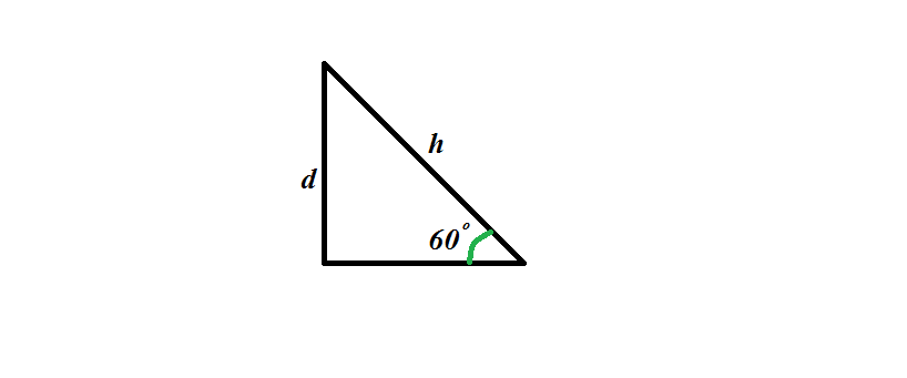 Исходя из геометрии задачи получаем прямоугольный треугольник, как показано на рисунке во вложении, тогда длина перпендикулярна исходя из отношений в прямоугольном треугольнике будет равна: