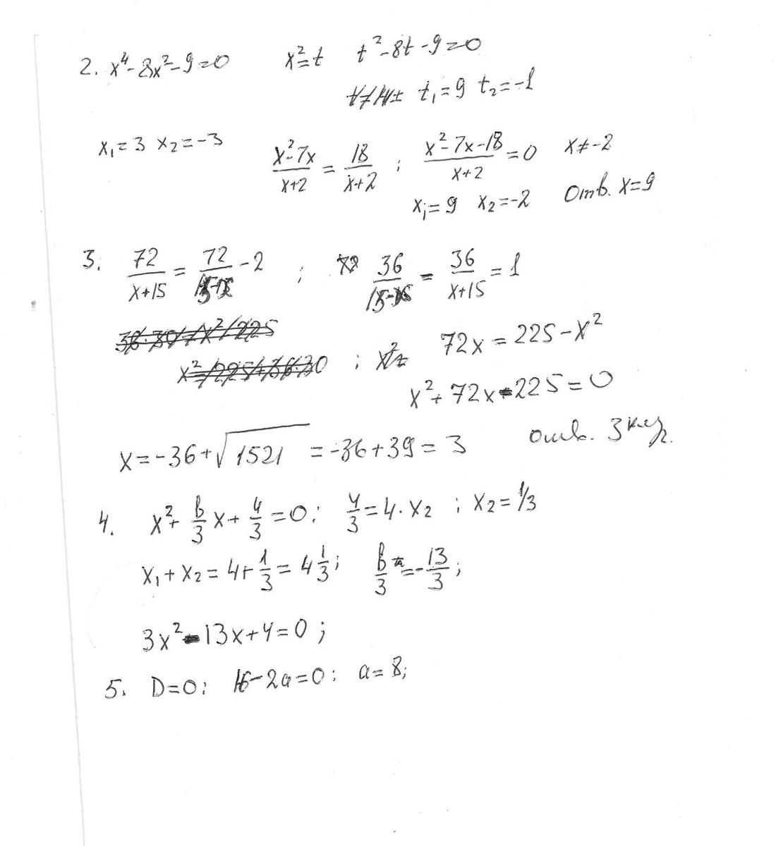 1) х4 -8x2 -9 =0; 2) (х2-7х )/(х+2)=18/(х+2)