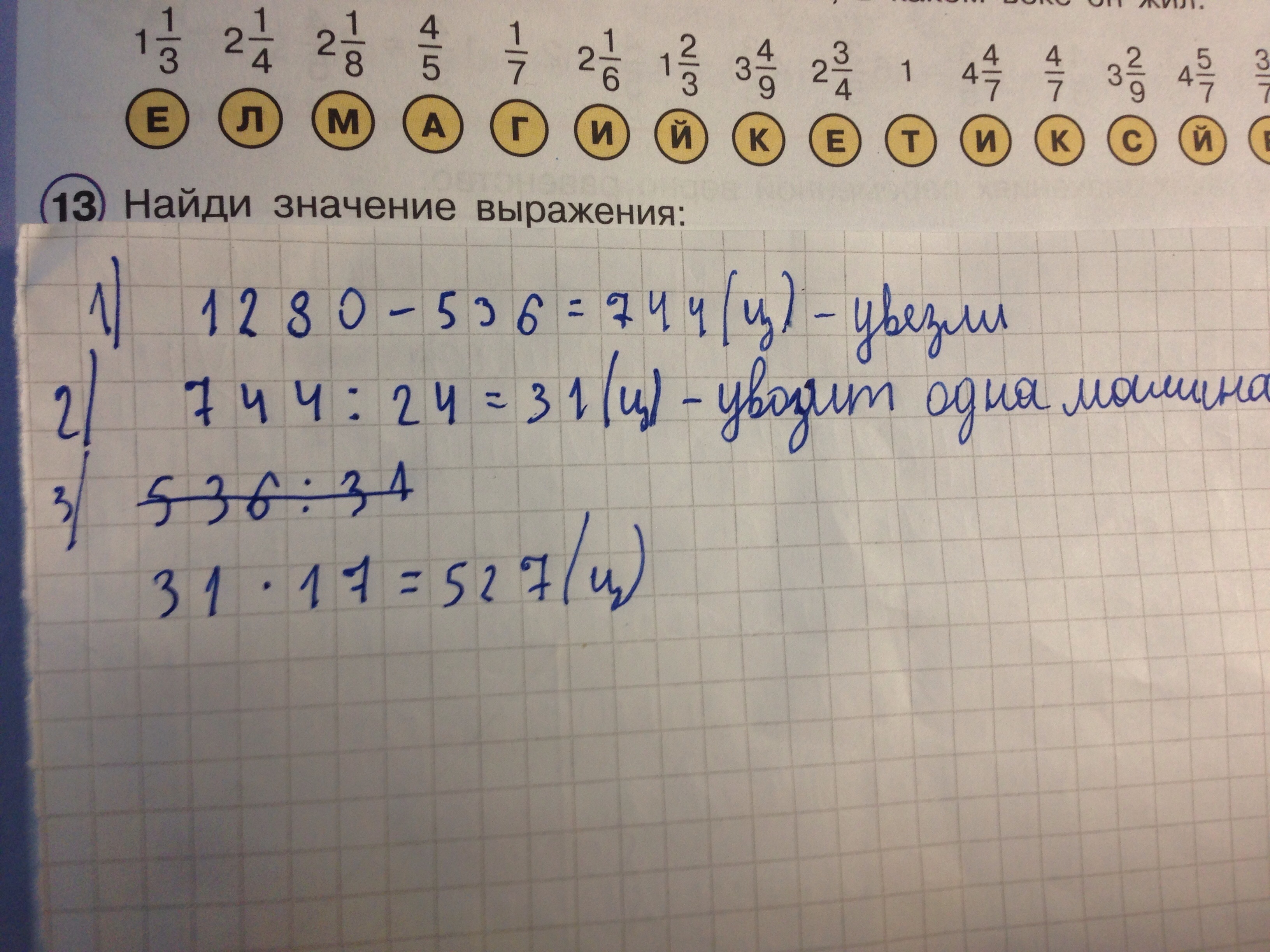 В овощехранилеше было 1 280 ц моркови когда увезлиморковь в 24 машинах поровну на каждой то в овощехронилеше осталось 536 ц моркови сколько центнеров увезли на каждой машине