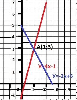 Координаты точки пересечения - Х=1 и У=3 - ОТВЕТ