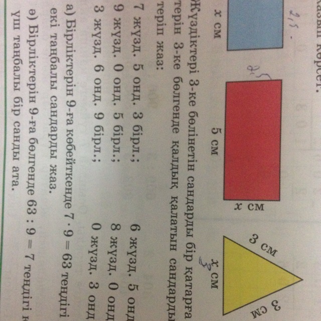 Жуздиктерди 3-Ке болинетин сандарды бир катарга жаз. Ал жуздиктерин 3-ке болгенде калдык калатын сандарды екинши катарга терип жаз